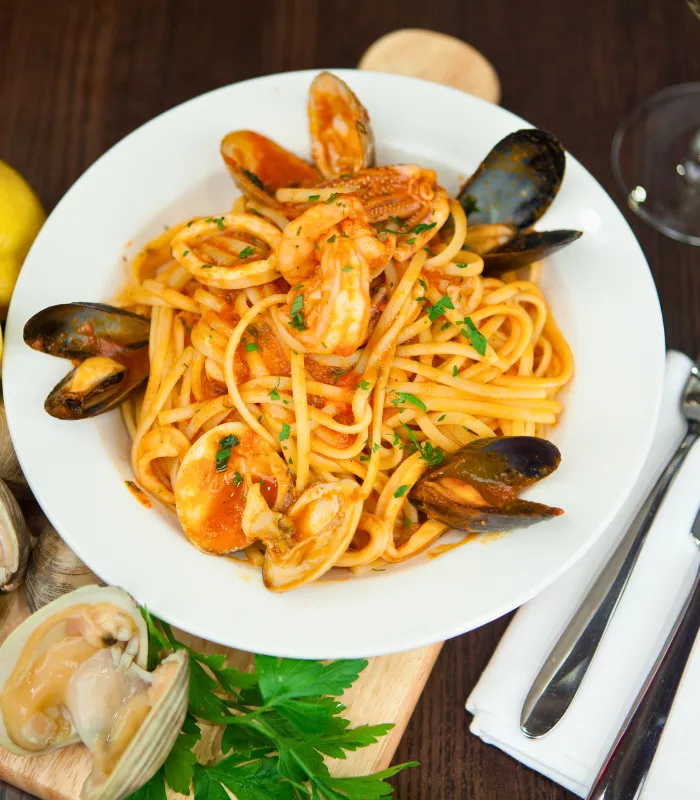 It's better to order pasta with a single type of seafood. This ensures proper cooking and better quality control.